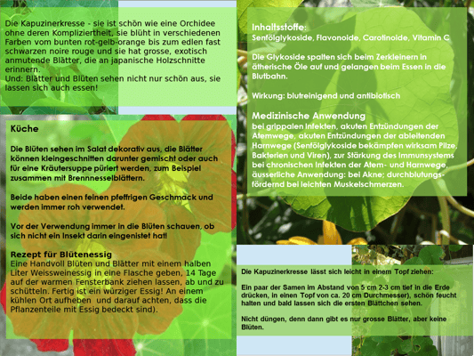 - und mein Liebling, die Kapuzinerkresse (mehr dazu im Monatsblatt)