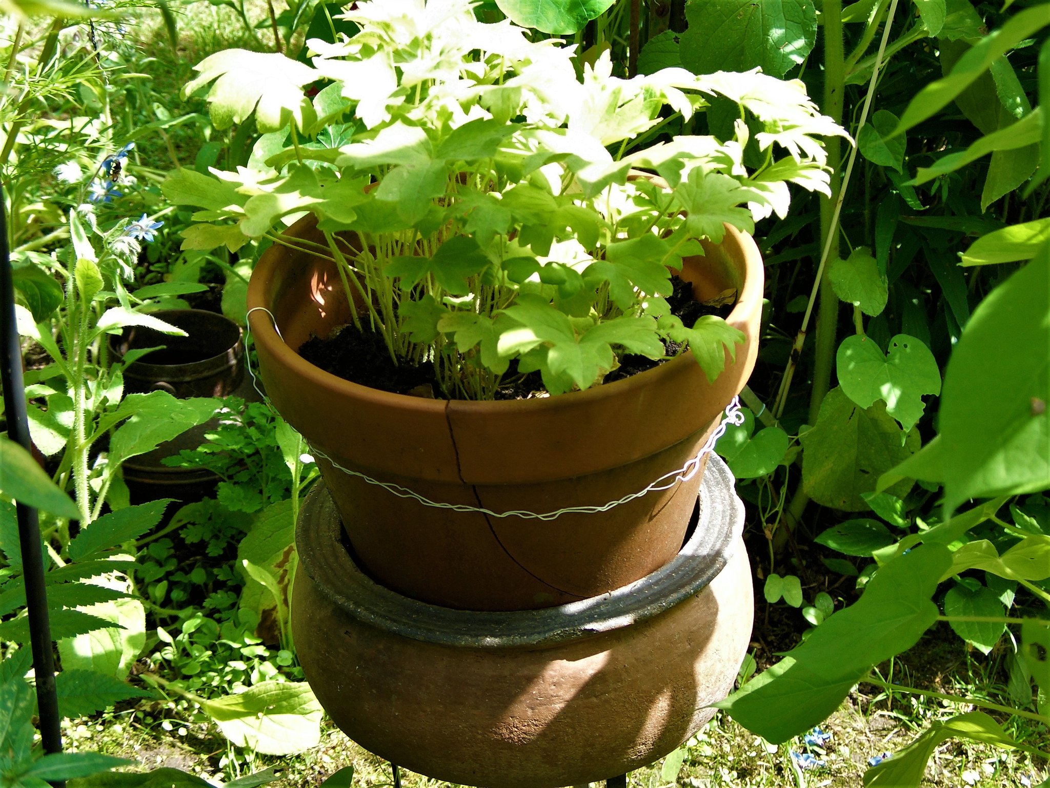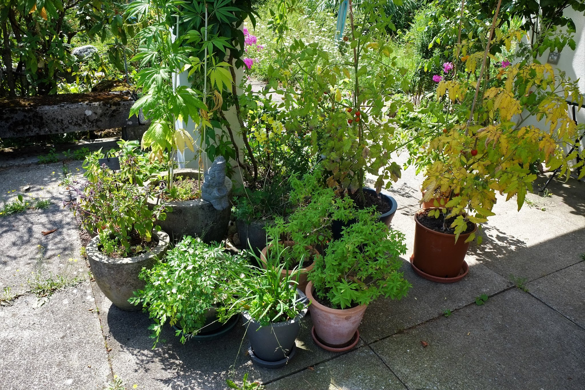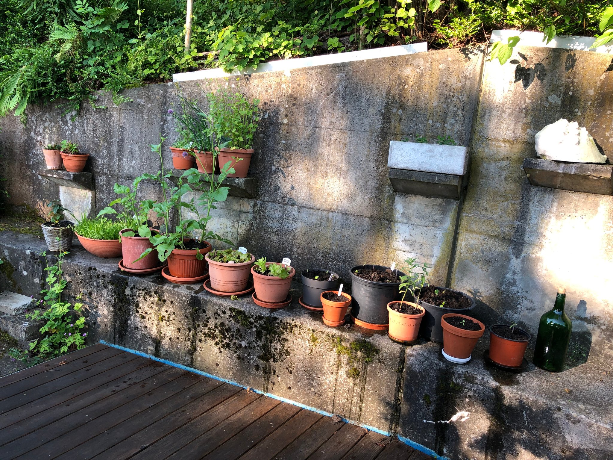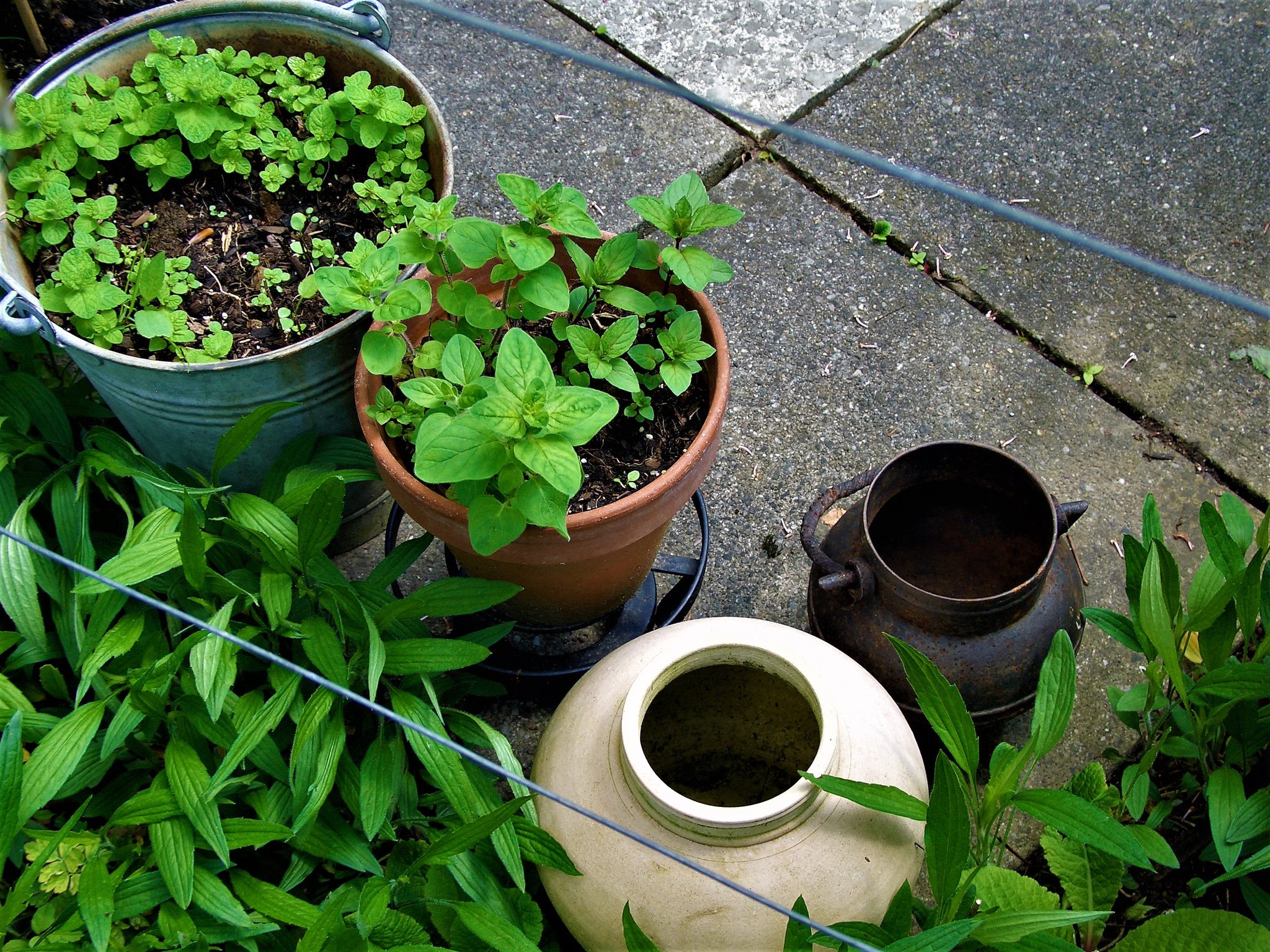 Auch im Garten sind Kräuter in Töpfen schnell zur Hand und sicher vor Schnecken. Im Sommer kann man sie dort hinstellen, wo gerade die Sonne scheint und die frostempfindlichen unter ihnen können