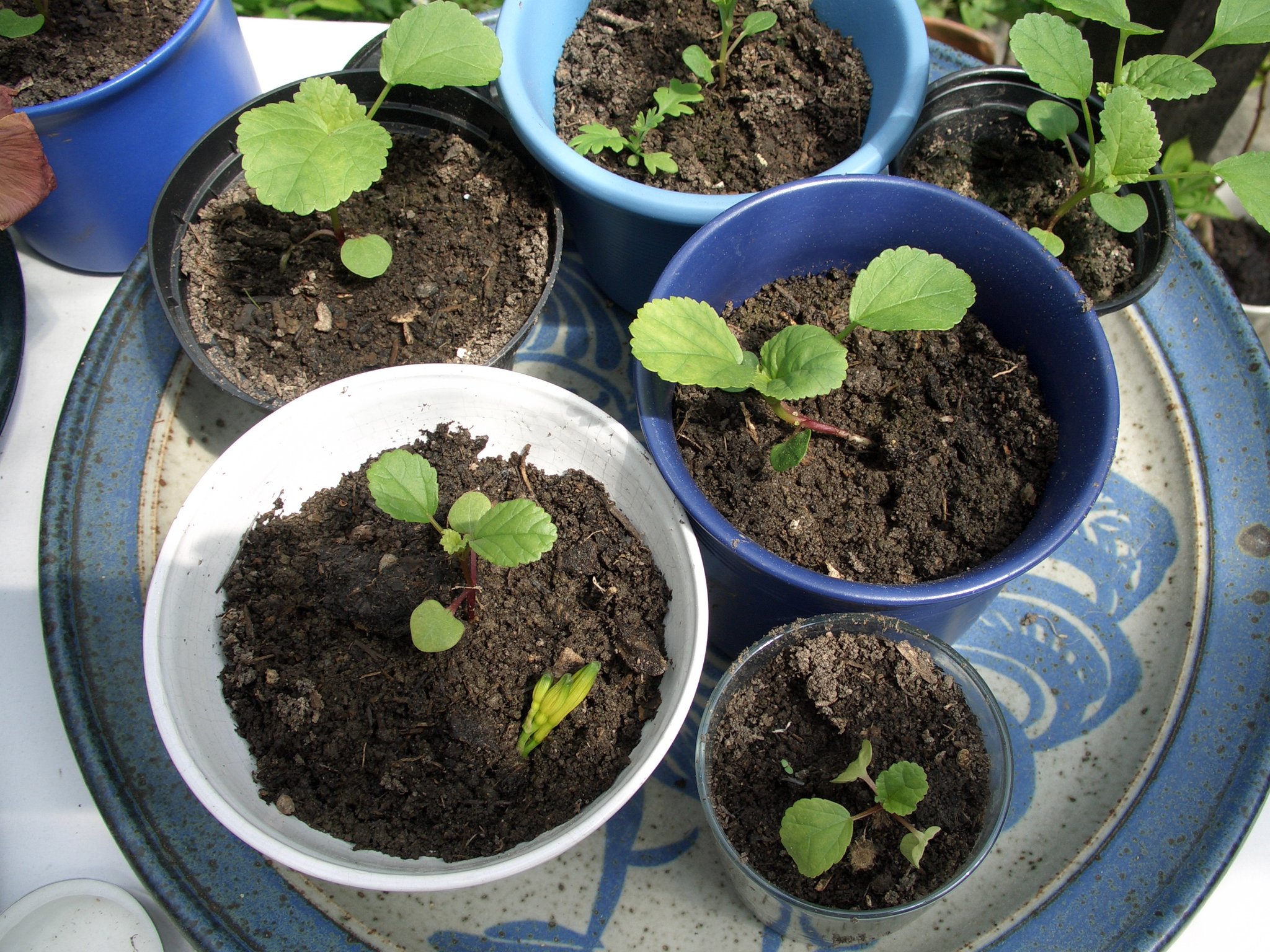Wer den Aufwand nicht scheut, zieht die Kräuter selber aus Samen. Man kann sie aussäen in Eierbechern oder Plasikschalen (in denen man mal was gekauft hat im Supermarkt), in die man zuvor ein paar Löcher bohrt.