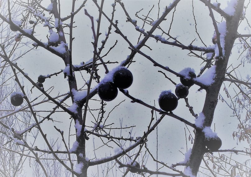 Nach dem Frost mögen auch die Vögel die Beeren. Deshalb ist es wichtig – wenn ihr auch Schlehen sammeln wollt – dass man nie den ganzen Strauch aberntet, sondern nur hie und da ein wenig, damit genug Nahrung für die Vögel bleibt.